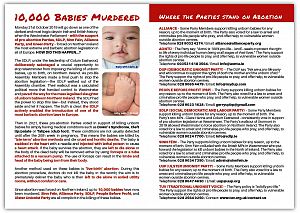 Our new leaflet is vital to inform the public of how killing babies in Northern Ireland was made legal with the collusion and support of the Parties; and how to challenge them in forthcoming elections.