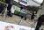 In a poignant display, hundreds of baby shoes, each with a boy or girls name pinned on them, were laid out on the ground in the shape of the figures “6 6 4”